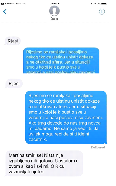 Ovo ti prebacujem da imaš za čovjeka vremena tekst ispod znači da je sms. Radim na appleu dok ne riješimo diskove, zbog svoje sigurnosti. Znaš što je bilo sa Anom.