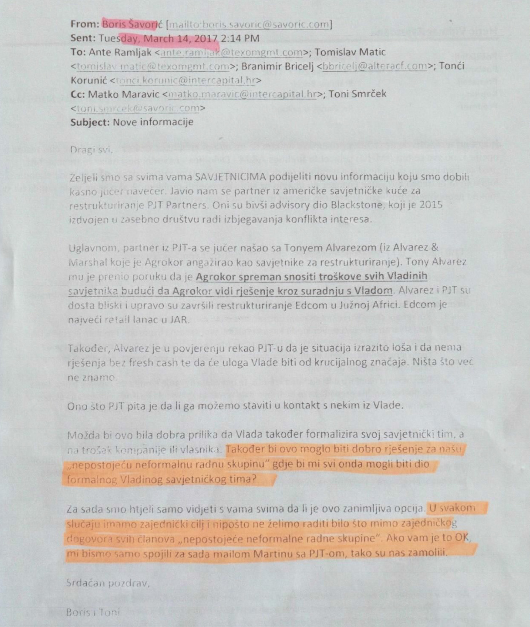 - Da odvjetnik „grupe BORG“ sam potvrđuje da su oni „nepostojeća neformalna radna skupina“.