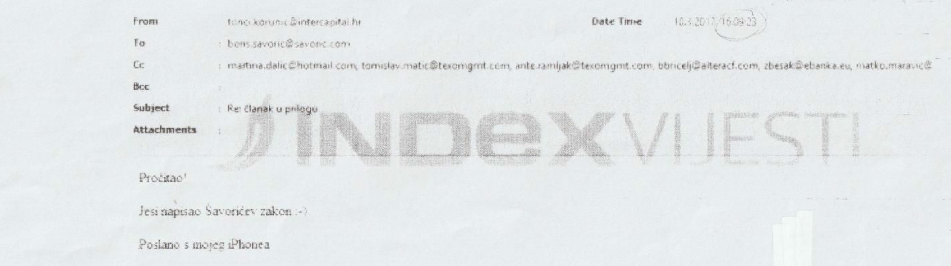 Evo ponovno izvadak iz maila koji potvrđuje navedeno u rečenici iznad: