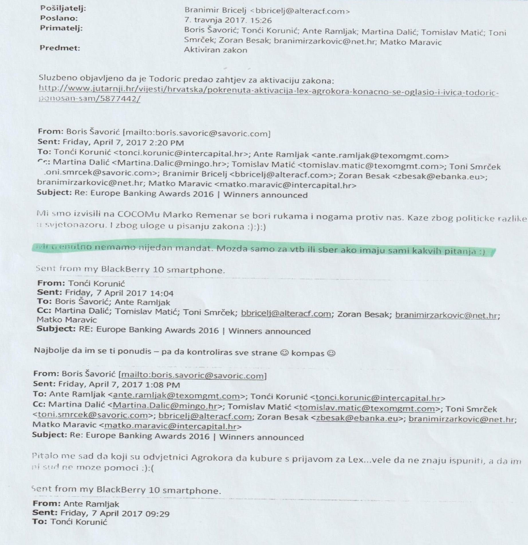 - „Grupa Borg“ je planirala, a poslije izvršavala radnje koje nisu bile u skladu sa zakonom. Upravo zato ciljano nije provela proceduru za reguliranje njihovog statusa. (potpis ugovora s Vladom).