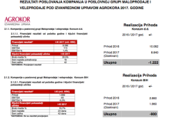 Iz prezentiranih podataka se vidi da je u kompanijama u poslovnoj grupi Maloprodaja i Veleprodaja Agrokora u 2017.godini u odnosu na 2016. godinu zabilježen: