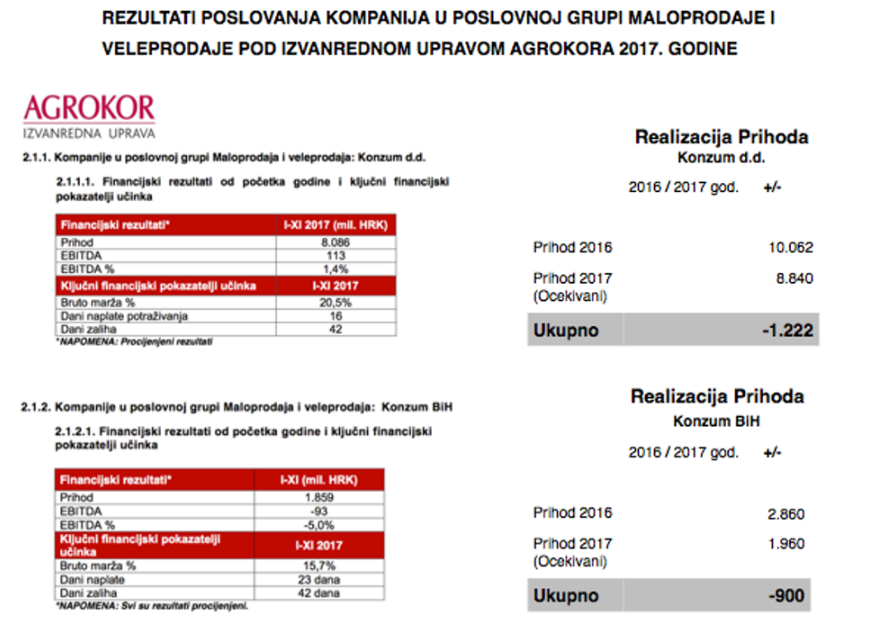 Kao što sam već pisao, Agrokor izvanredna uprava redovno je prezentirala poslovanje sa nekonsolidiranim brojkama sve do 11 mjeseca, uključujući 11. mjesec 2017. godine.