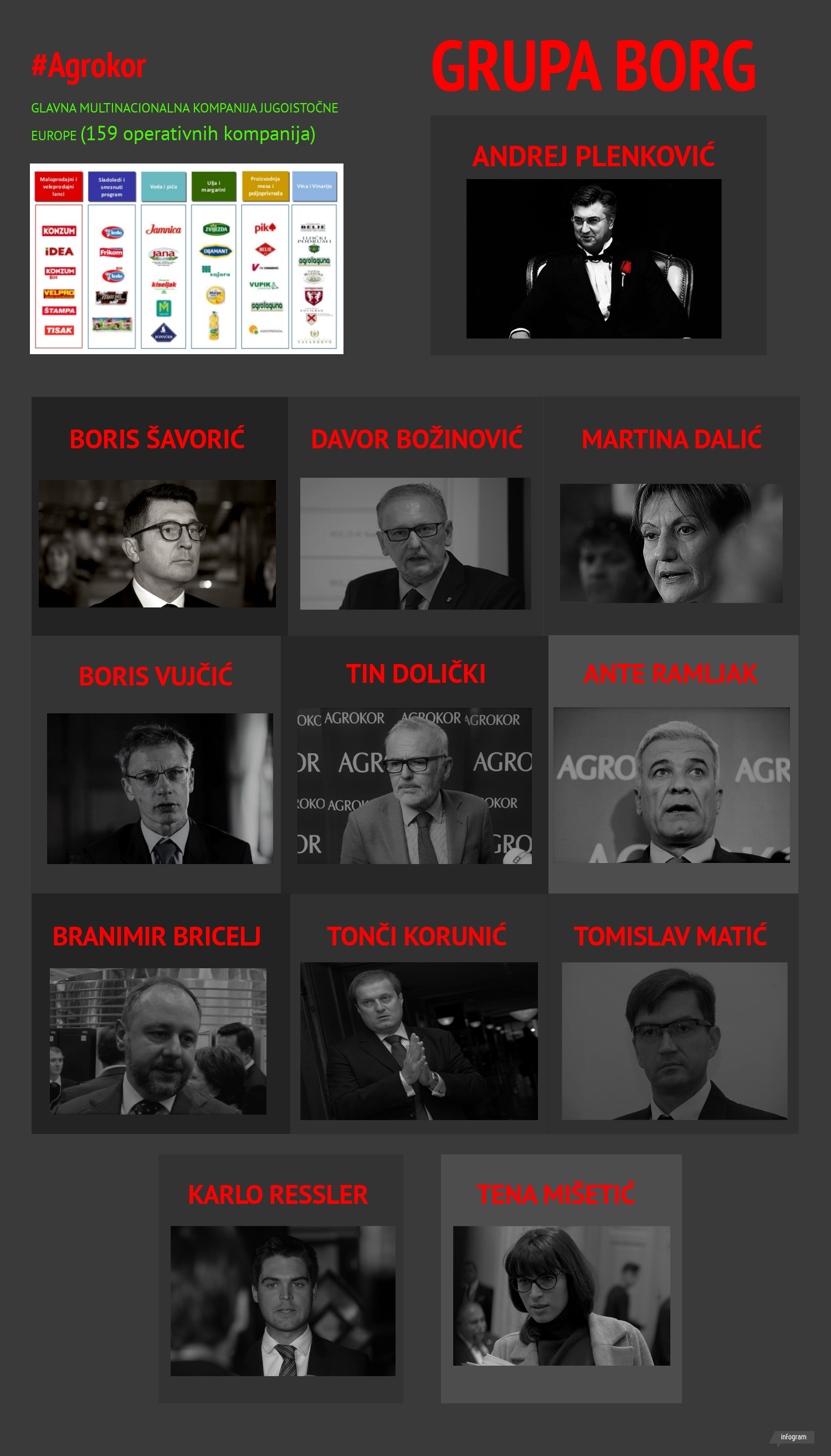 Obzirom na nove dokaze koje sam prikupio i koje ću ubrzo objaviti, dopunjujem mrežu ljudi u RH koja je provodila kriminalne aktivnosti pljačke i otimanja Agrokora, poznatija kao Grupa Borg.