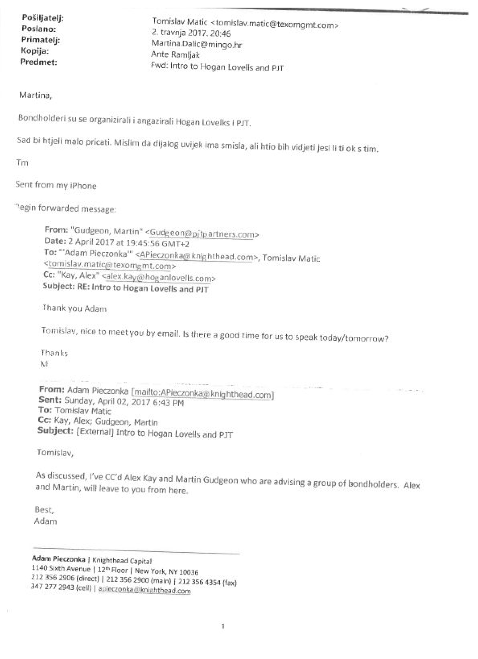 - Objavljujem Vam mailove i dokaze kako se između grupe „Borg“ i Knighthead-a komuniciralo daleko prije nego je i izglasan Lex Agrokor u Saboru: