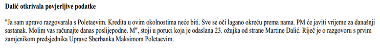 „JA sam upravo razgovarala sa Poletaevim. Kredita u ovim okolnostima neće biti."