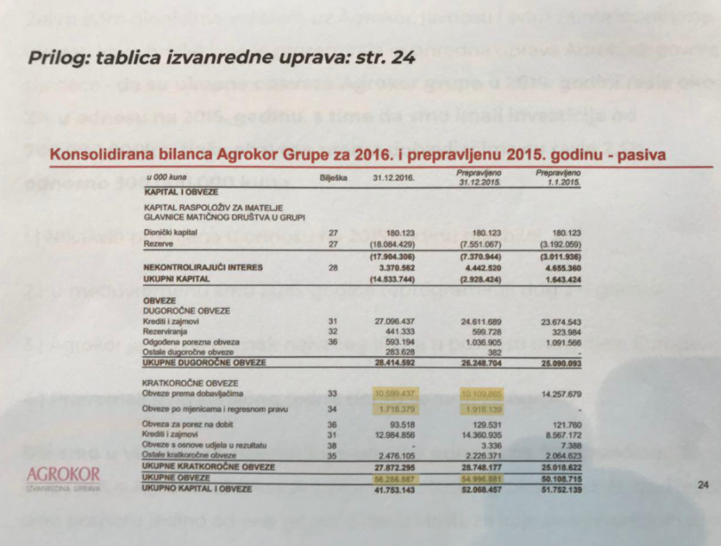 - Ukupne obaveze (dug) Agrokora su rasle u 2016. g. u odnosu na 2015. g. samo 2% . A dapače, najveći dio obveza je odgođen za tri godine. Odakle onda problem iz plana (kuhinje) Plenković – „Borg Grupa“ (Prilog 2.)