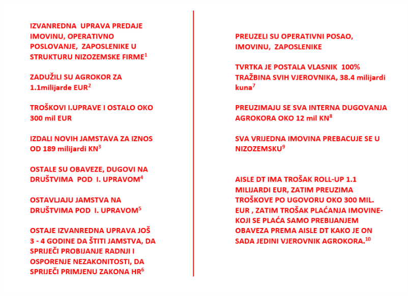 Osnovni alat za provođenje nezakonitih radnji i otimanje Agrokora su: zakon – Lex, Roll-up ugovor i jamstva!!! Čitavi model nagodbe – otimanja, od samoga početka su isplanirani i sada se želi provesti na osnovu jamstvima koja su trebala biti osporena. Narednih dana ćemo prezentirati što ovakva nagodba znači za hrvatsku državu, dosadašnje vlasnike i ostale dionike.