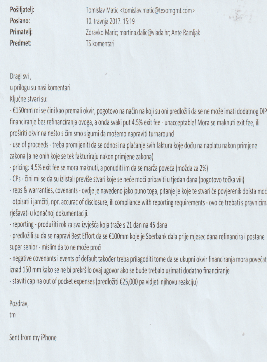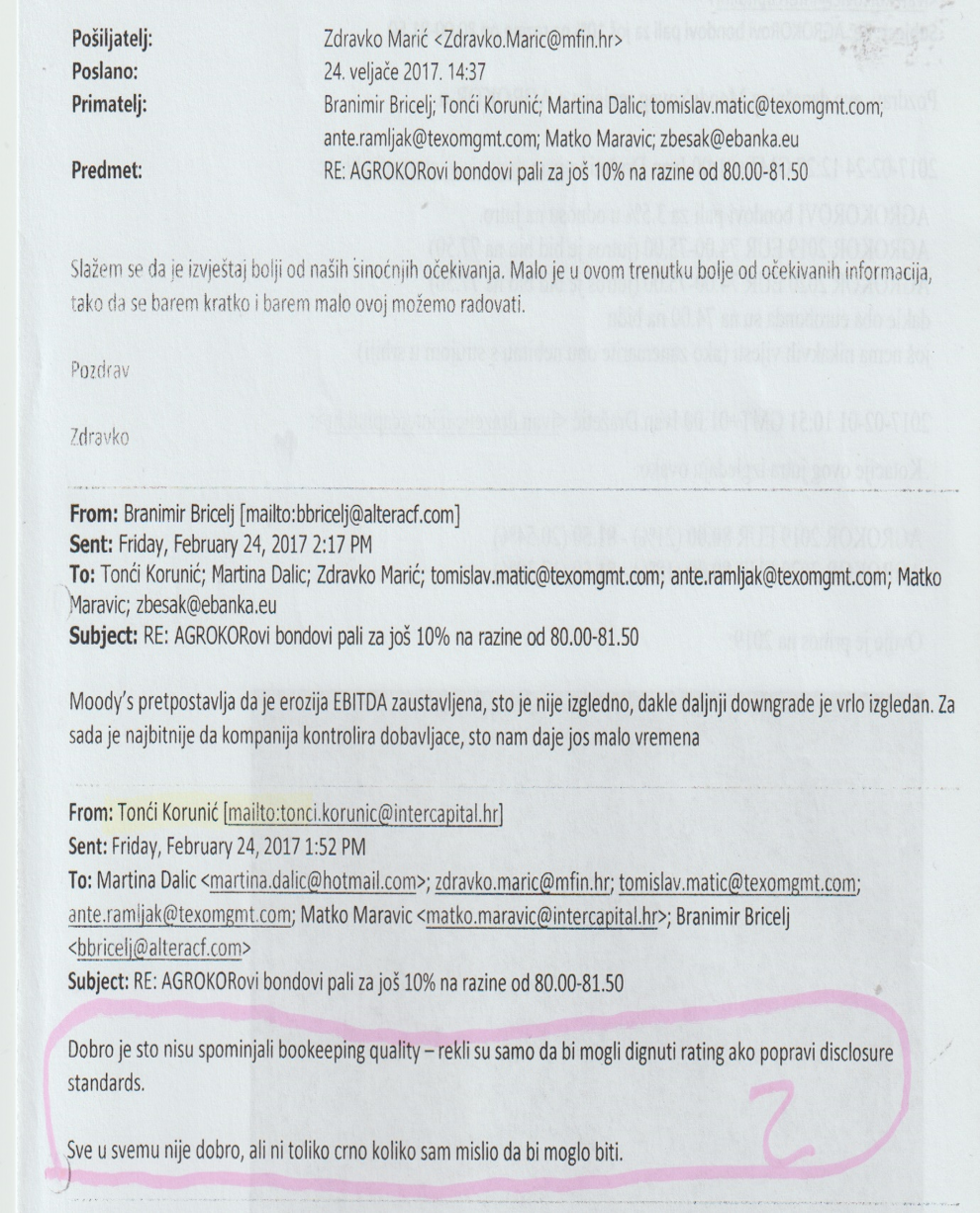T. Korunić partner i član Upravnoga odbora kompanije Intercapital (brokerske usluga i trgovanje idr.) šalje mail ministru Financija RH ZDRAVKU MARIĆU, gdje piše: