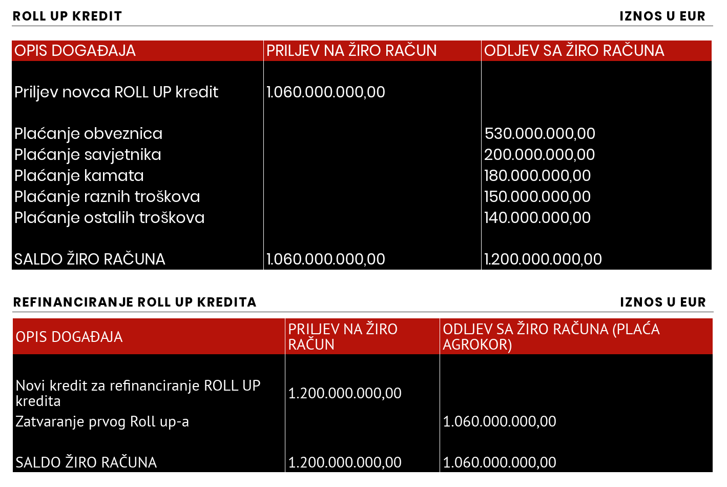Zločinačka organizacija (grupa „Borg“) koja je isplanirala neprijateljsko preuzimanje Agrokora nametnula je tezu o financijskim problemima Agrokora i potrebi za kapitalom. Danas imamo dokaze da se roll-up kredit nije iskoristio za operativno poslovanje Agrokor.