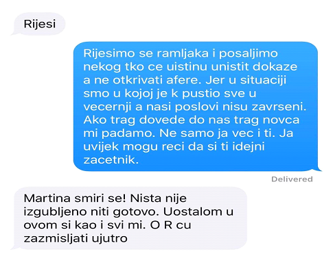 U tom istom Jutarnjem listu od 10.05.2018. godine je objavljen sljedeći (navodni) SMS između Martine Dalić i Andreja Plenkovića.