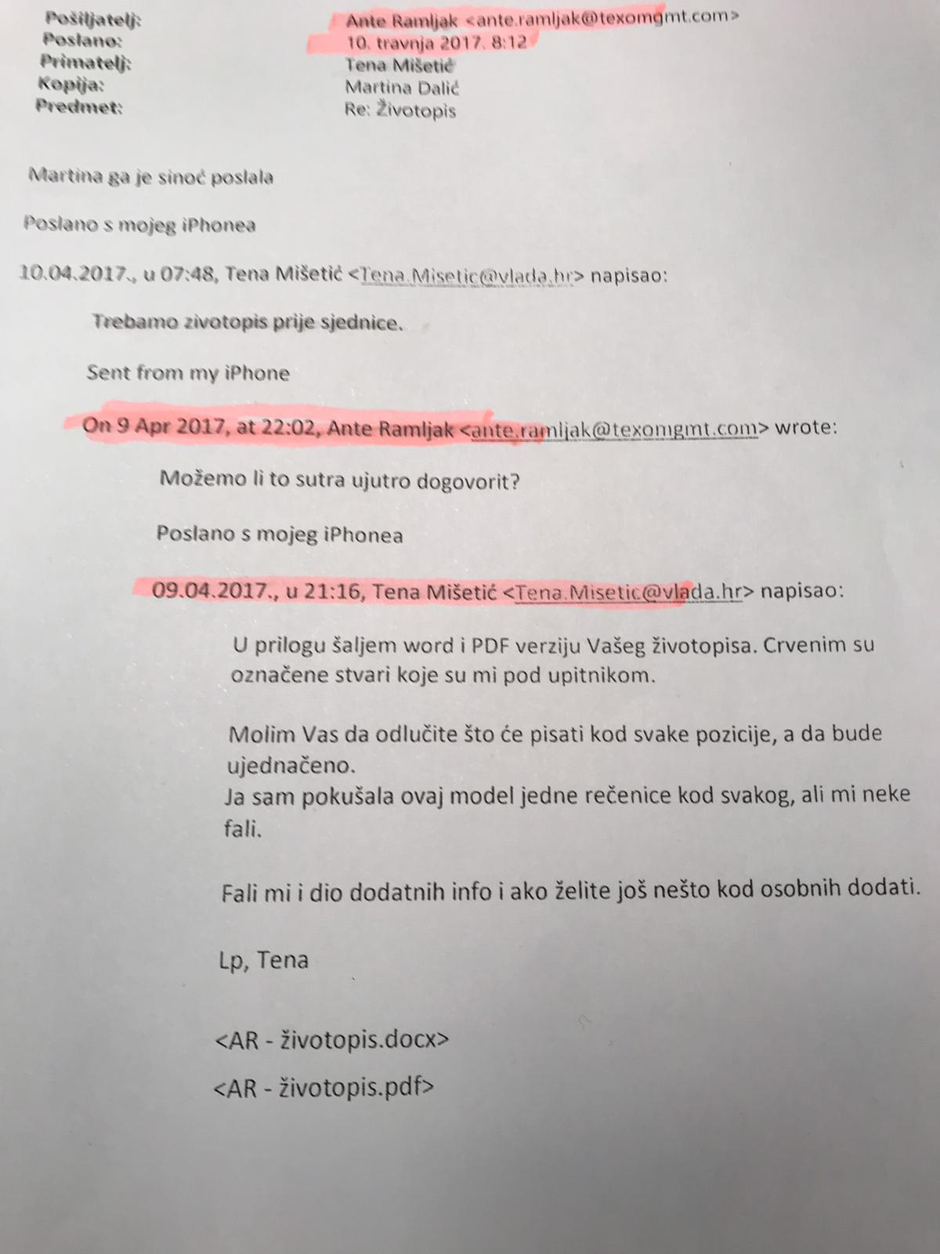 Tena Mišetić zamjenica predsjednika Ureda Vlade RH, čitaj predsjednik Vlade RH A.Plenković i tadašnja potpredsjednica Vlade RH pišu ŽIVOTOPIS članu grupe BORG Anti Ramljaku koji trebaju uputiti Vladi RH (dakle sebi) kako bi Antu Ramljaka imenovali za Izvanrednoga povjerenika u Agrokor. Ovo nije skandal ovo je kriminal!