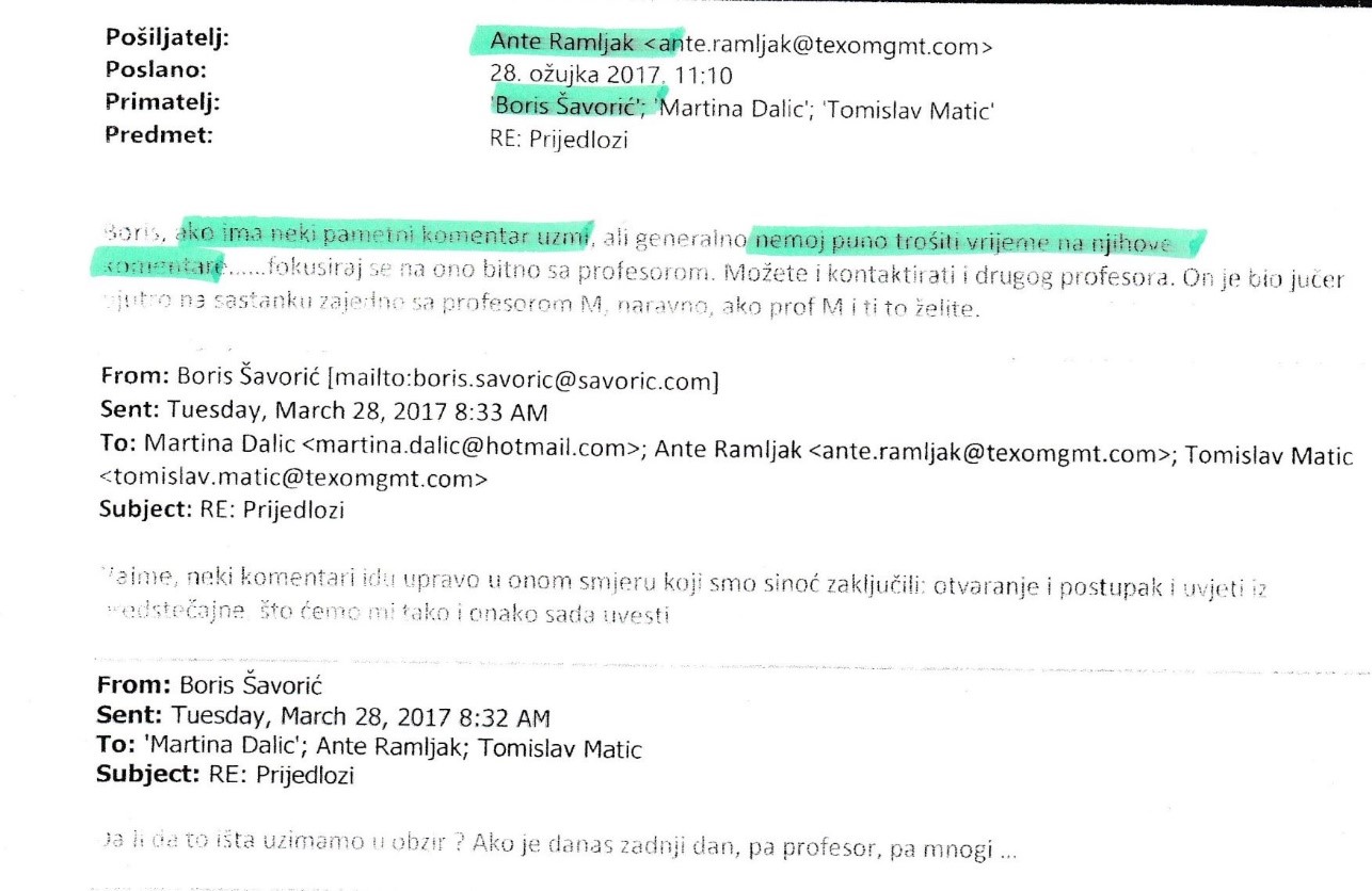 Plenkovićevi ortaci Martina Dalić, Ante Ramljak i drugi izruguju se i podcjenjuju Hrvatske profesore, prof Miladina, prof. Garešić, prof. Jurčića . Sve se to može vidjeti u e-mailovima koje međusobno razmjenjuju.