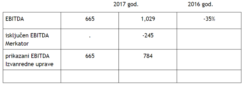 Primjer 2. EBITDA – Izvanredna Uprava Agrokora je prezentirala EBITDA za 2016. i 2017. god. – međutim ,ove brojke ne mogu nikako ni priblizno biti istinite!