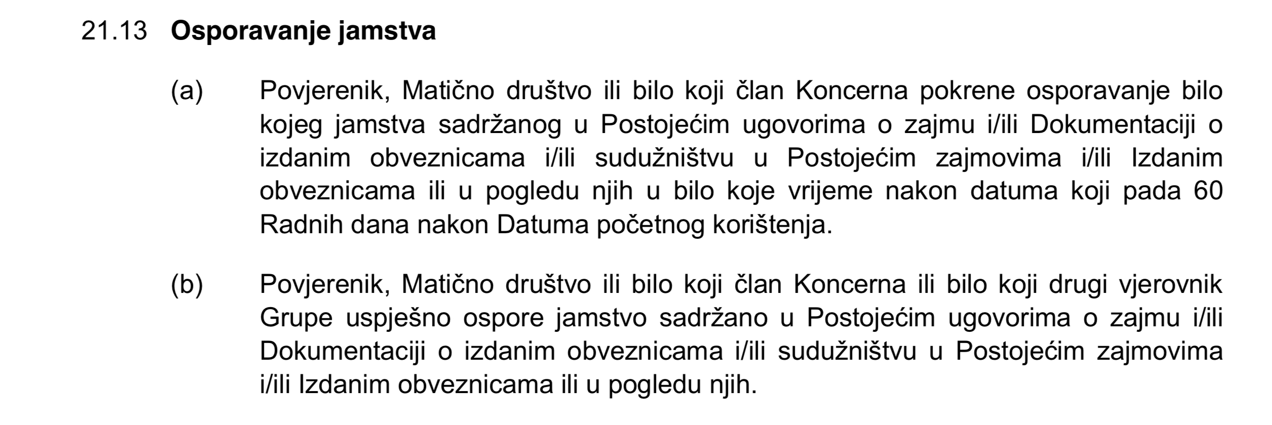 A što je napravio Knighthead? Dao je Hogan Lovells-u i Tinu Doličkom da u ugovor o tzv. Roll-UP kreditu uđe odredba koja kaže da se pazite - baš NE SMIJU OSPORITI JAMSTVA.